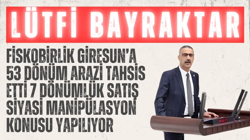 AK Parti Sakarya Milletvekili ve aynı zamanda FİSKOBİRLİK Yönetim Kurulu Başkanı Lütfi Bayraktar, TBMM Genel Kurulu’nda yaptığı konuşmada, kurumla ilgili ortaya atılan iddiaların gerçeği yansıtmadığını belirtti. Bayraktar, özellikle son günlerde Giresun’daki FİSKOBİRLİK arazilerinin satışı üzerinden yürütülen eleştirilerin kamuoyunu yanıltmaya yönelik olduğunu vurguladı.