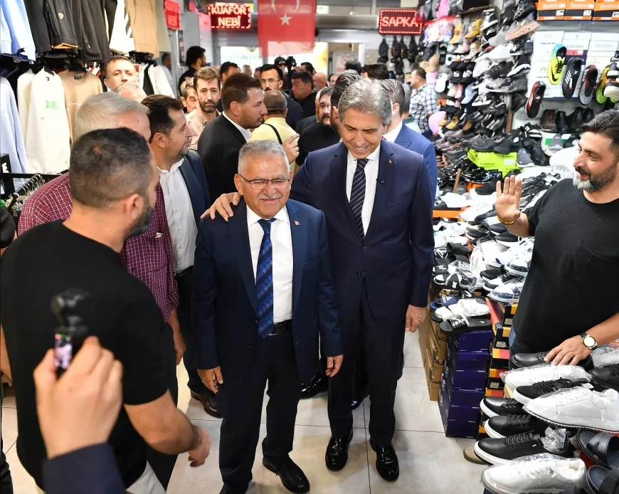 Kayseri Büyükşehir Belediye Başkanı Memduh Büyükkılıç, AK Parti Genel Başkan Yardımcısı ve Yerel Yönetimler Başkanı Mustafa Demir ile birlikte kentte esnaf ve vatandaşlarla bir araya geldi.