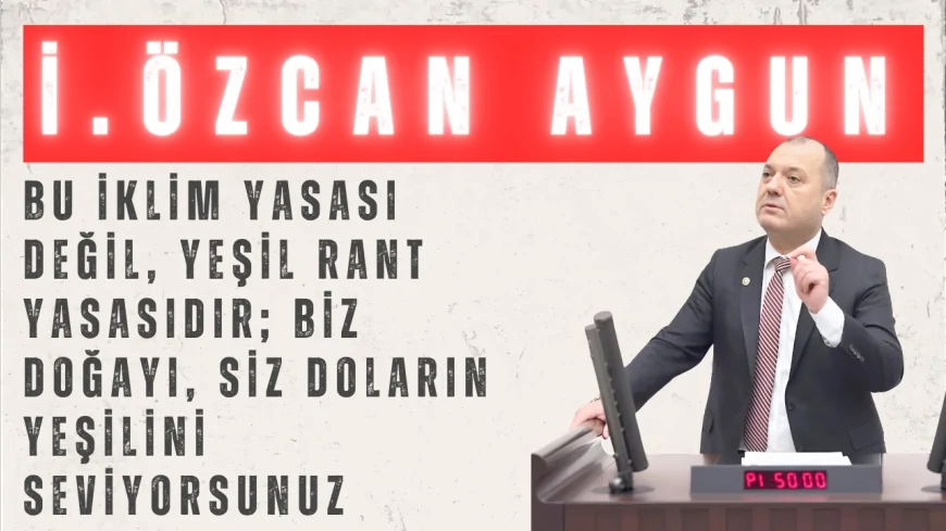 CHP Tekirdağ Milletvekili İlhami Özcan Aygun, 2 Temmuz 2025’te TBMM Genel Kurulu’nda görüşülen İklim Kanunu Teklifi’nin geçici 2’nci maddesi üzerine söz alarak, yasanın eksikliklerini ve uygulamadaki ikiyüzlülüğü eleştirdi. Aygun, mevcut iktidarın çevreye karşı değil, rant ve yandaş çıkarlarına hizmet ettiğini söyledi.