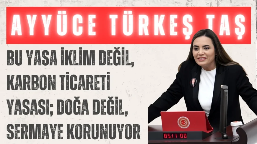 Türkeş Taş, konuşmasının sonunda şunları söyledi: “Orman, göl, akarsu yalnızca coğrafya değil; bu milletin hatırasıdır. Bu yasa doğayı değil, karbon borsasını koruyor. Bu anlayışı reddediyoruz.”